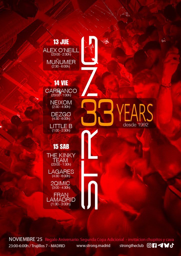 Ven a celebrar este finde nuestro 𝟯𝟯 𝗔𝗡𝗜𝗩𝗘𝗥𝗦𝗔𝗥𝗜𝗢.. El mítico club gay del centro de Madrid que hizo historia desde principios de los 90s, y que actualmente está en constante cambio y modernización, cumple 𝟯𝟯 𝗔Ñ𝗢𝗦 adaptándose a los nuevos tiempos que corren para continuar trascendiendo épocas, modas y tendencias. Descubre una programación alternativa de reciente actualidad.
