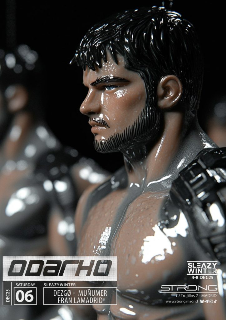 On 𝗦𝗔𝗧𝗨𝗥𝗗𝗔𝗬, 𝟲𝘁𝗵 𝗗𝗘𝗖𝗘𝗠𝗕𝗘𝗥, «SLEAZY WINTER” will be the next edition of 𝗢𝗗𝗔𝗥𝗞𝗢 at 𝗦𝗧𝗥𝗢𝗡𝗚 𝗧𝗵𝗲 𝗖𝗹𝘂𝗯 during the December bank holiday in Spain. We merge electronic music, melodic techno, dress codes, and masculine action. 𝗙𝗥𝗔𝗡 𝗟𝗔𝗠𝗔𝗗𝗥𝗜𝗗, 𝗗𝗘𝗭𝗚Ø, 𝗠𝗨Ñ𝗨𝗠𝗘𝗥 lead the sounds through their unique styles: Indie Dance / Melodic House & Techno / Dance Club, creating a hypnotic, abstract, and genuine sound atmosphere.